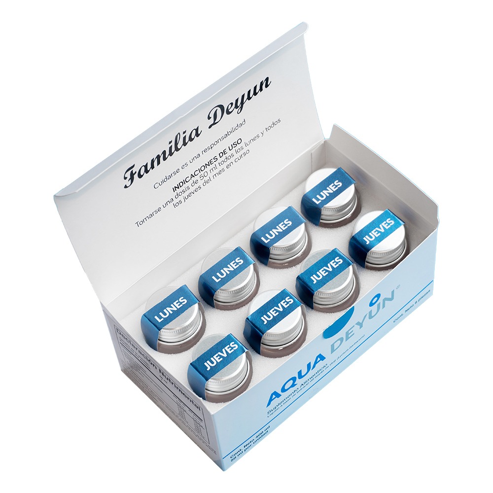 AQUA DEYUN se suministra vía oral, en dosis de 50 ml, cuatro días a la semana. Después de dos a tres meses de consumo, la fórmula garantiza que los niveles de glucosa en sangre, medidos a través de glucómetro o análisis de hemoglobina, descienden significativamente para beneficio en el corto plazo del paciente.