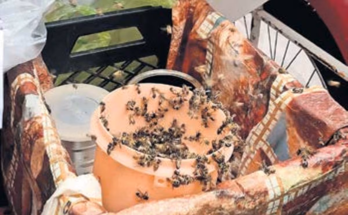 Doña María Juárez, vendedora de pan, café y tortas en un triciclo en el Parque España, alcaldía Cuauhtémoc, denunció públicamente la muerte sistemática de abejas que la acompañan desde hace más de una década. La comerciante, conocida entre vecinos y clientes como la “reina de las abejas”, señaló que desde junio de 2025 detectó la colocación de trampas con agua azucarada mezclada con jabón de limpieza, lo que provocó la muerte masiva de los insectos.