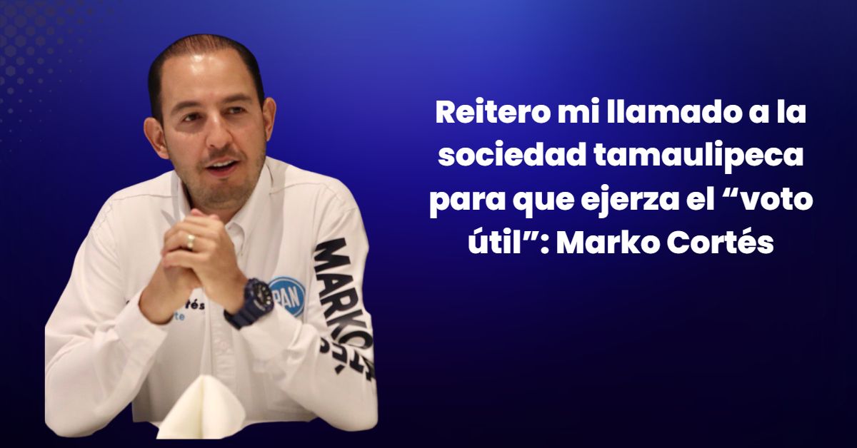El presidente nacional del PAN, Marko Cortés Mendoza, reiteró su llamado a la sociedad tamaulipeca para que le dé el voto útil al candidato de la coalición Va por Tamaulipas, César “Truko” Verástegui y garantizar con ello la defensa de Tamaulipas.