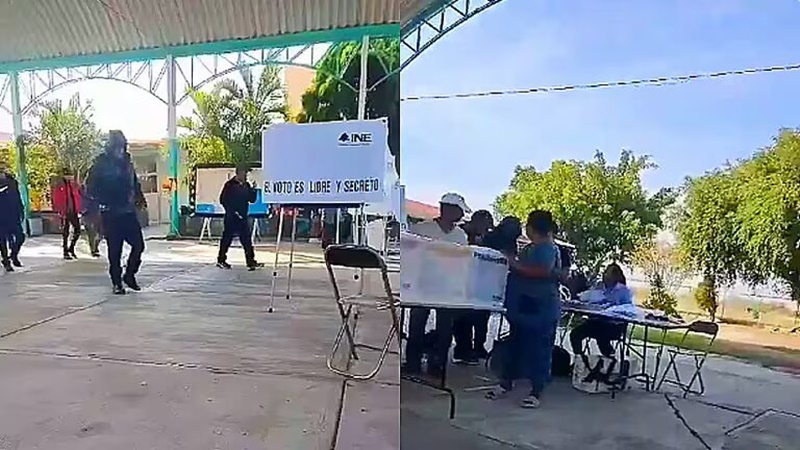 Lo anterior se dio a conocer en la red social X, en un clip de siete segundos, en el cual se aprecia que varios individuos, al parecer seis, quienes llevaban ropa oscura, capuchas y cubrebocas arribaron sorpresivamente al inmueble y amagaron con armas de fuego a los funcionarios electorales.