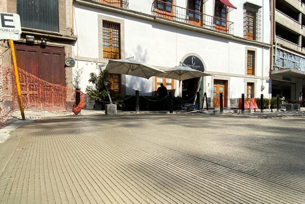 Para mejorar la imagen urbana del primer cuadro de la ciudad, actualmente se rehabilitan 480 metros cuadrados de arroyo vehicular y 60 metros cuadrados de banquetas en esta calle que aún conserva su trazo original y cantera de Huichapan, Hidalgo, cuyas piezas intactas serán reutilizadas para la franja que divide ambos sentidos de la vialidad; en el resto del espacio se ocupará MR-45, un concreto premezclado con resistencia a la flexión, que es ideal para rodamiento.