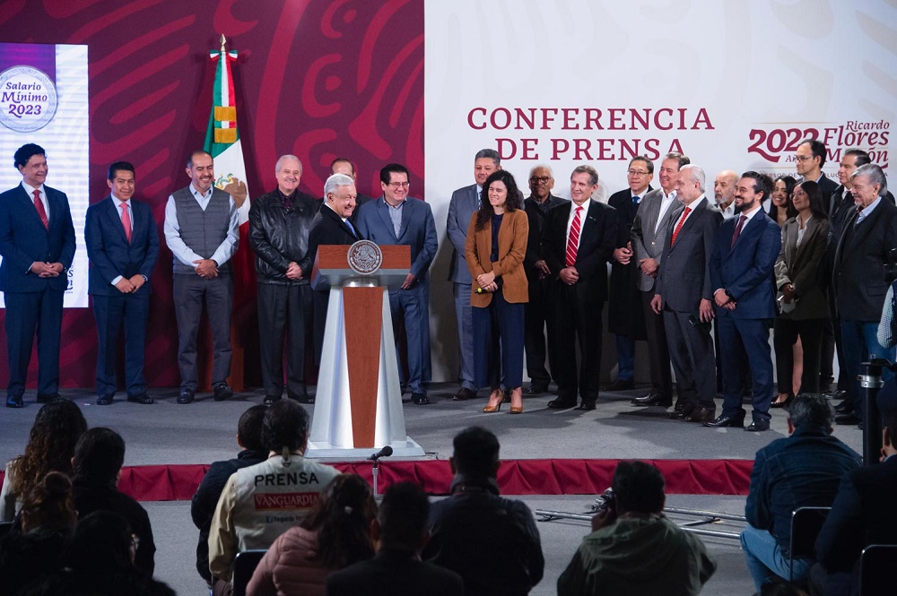 “Quiero aprovechar para agradecerle al sector obrero y, de manera muy especial, al sector empresarial porque ya llegaron a un acuerdo para el aumento al salario mínimo. (…) Hay consenso, es decir, sector obrero, sector empresarial y gobierno coinciden una vez más en el incremento al salario mínimo”, enfatizó.