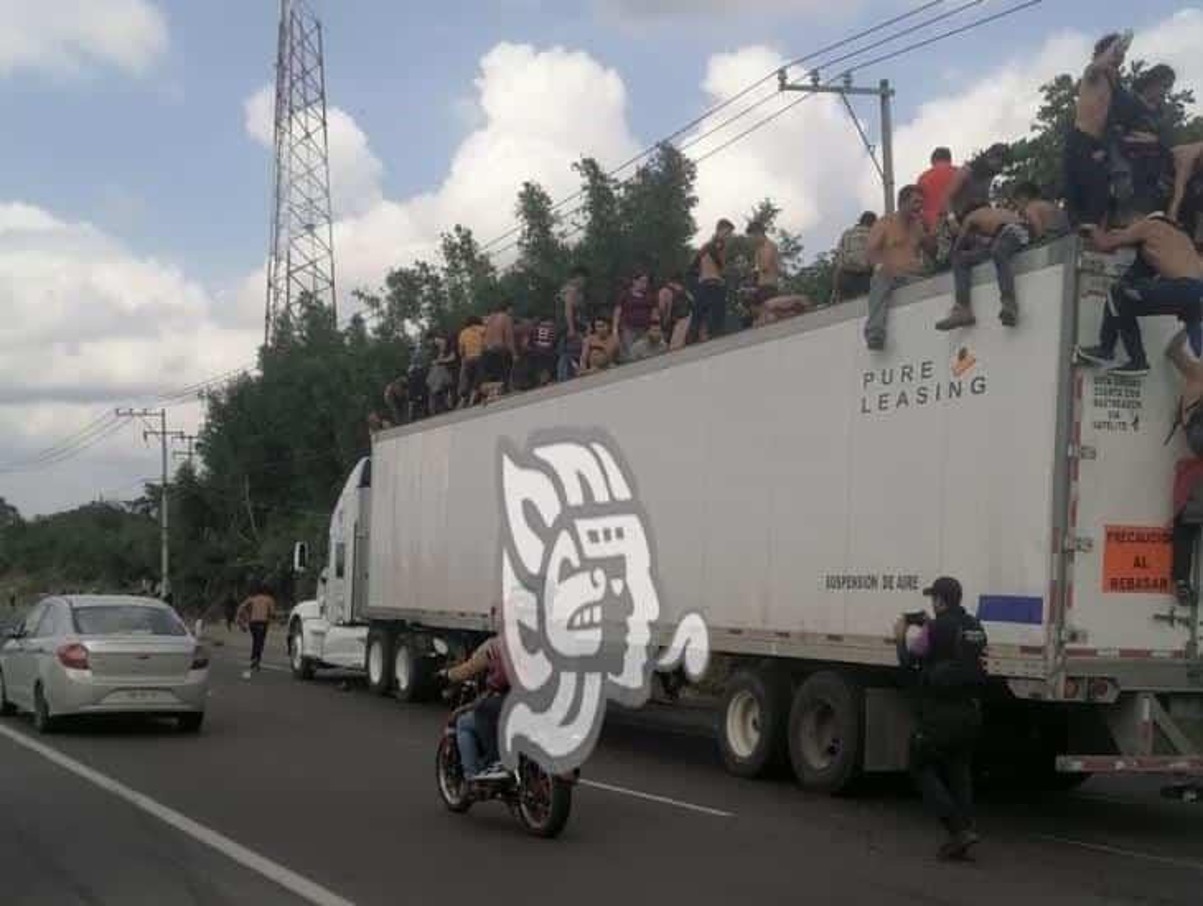 Cuando las autoridades acudieron a revisar a la pesada unidad, detectaron que transportaba a más de 100 migrantes, entre ellos niños, hacinados en la caja seca.