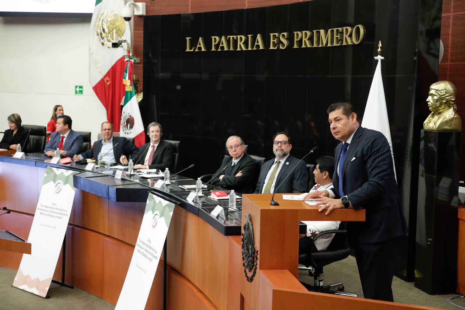 El presidente de la Mesa Directiva el Senado, Alejandro Armienta Mier inauguró el Foro “Corresponsales bancarios y remesas en la relación bilateral México-Estados Unidos” donde Robert J. Shapiro, investigador y ex asesor de Bill Clinton y Barack Obama presentó un estudio de la evidencia de los efectos económicos y sociales adversos que ha tenido la regulación de Estados Unidos contra el lavado de dinero y la lucha contra el terrorismo.