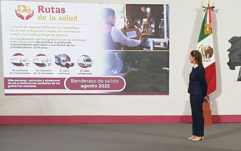 La presidenta recordó que la logística anterior dependía de solicitudes individuales desde cada unidad médica a los almacenes regionales, lo cual podía tardar días o incluso semanas. Ahora, con las Rutas de la Salud, la entrega es mensual y completa, y se ajustará conforme se avance en la digitalización de los procesos del IMSS-Bienestar.