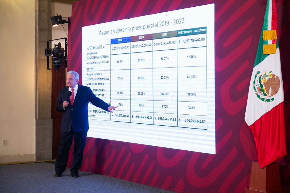 “Estoy muy orgulloso de las Universidades Benito Juárez. Es uno de los mejores programas del gobierno; (…) un ejemplo de que, cuando se maneja el presupuesto con honestidad, rinde”, expresó el jefe del Ejecutivo.