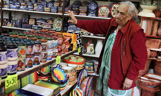 En la misma zona se encuentra el Centro Ceramista, cuna de maestros del barro con más de cuarenta años de historia. Esta institución emblemática mantiene vivo el oficio de la cerámica artesanal y muestra cómo las técnicas tradicionales pueden dialogar con propuestas modernas. Aquí es posible encontrar vajillas completas, macetas, lámparas, jarrones y objetos decorativos que fusionan tradición y diseño contemporáneo. Además, el espacio ofrece tejidos y bordados tradicionales, rebozos, manteles, prendas y accesorios que complementan la riqueza de su oferta.