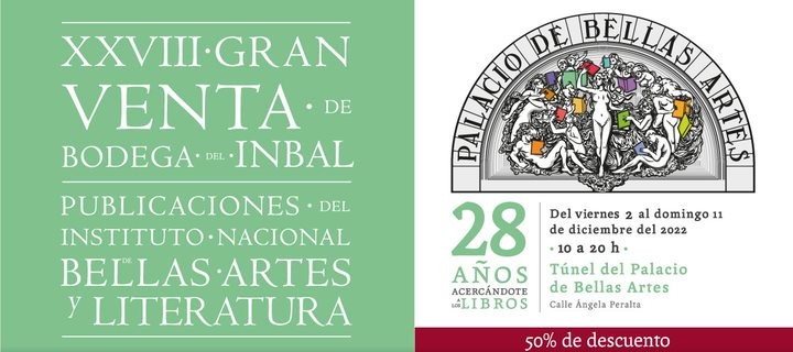 CDMX a 1 de diciembre, 2022.- Del viernes 2 al domingo 9 de diciembre, de las 10:00 a las 20:00 horas, se realizará la XXVIII Gran Venta de Bodega de Libros del Instituto Nacional de Bellas Artes y Literatura (Inbal), en el túnel del Palacio de Bellas Artes, el cual se ubica a un costado de la plaza Angela Peralta.